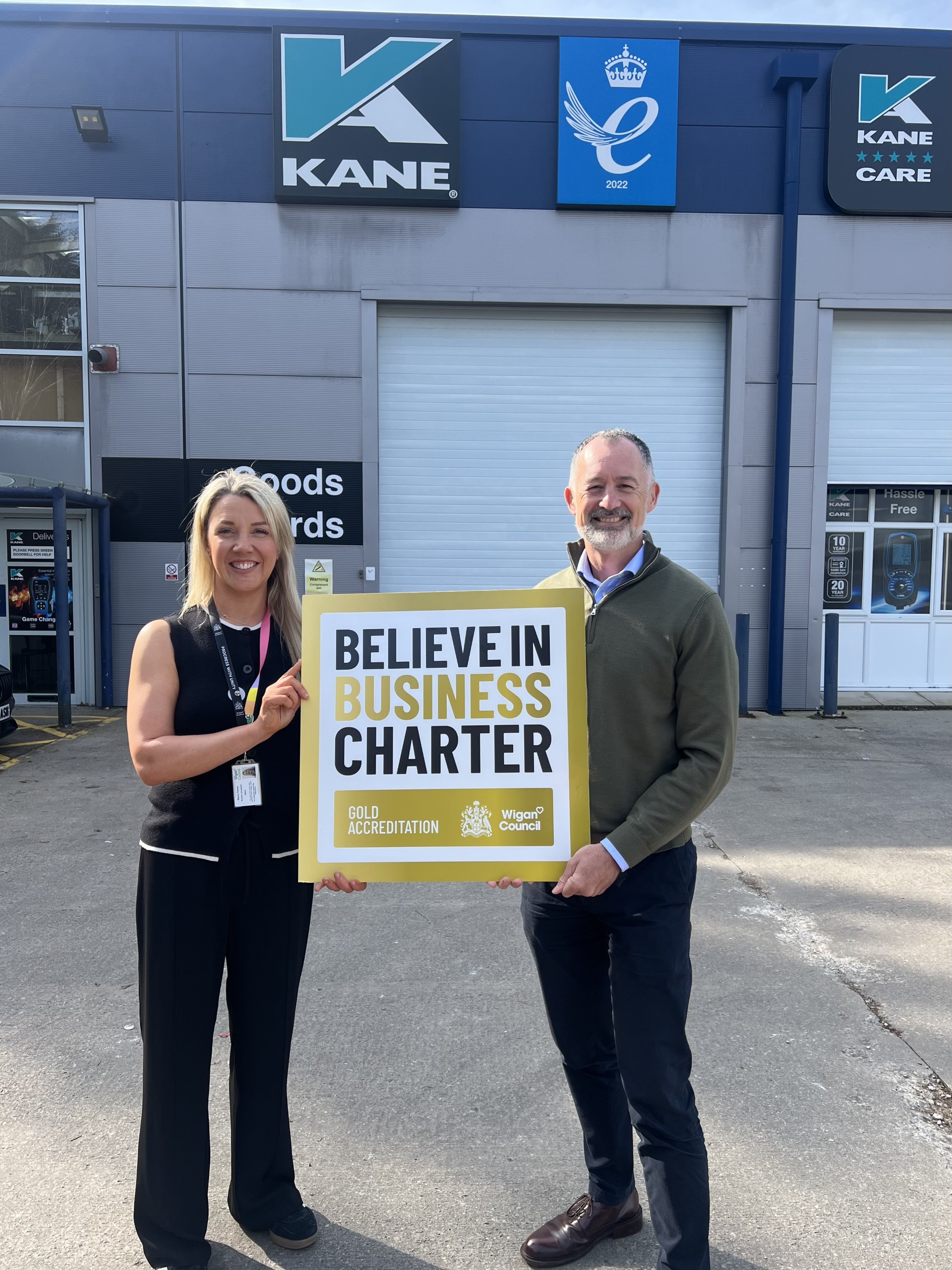 KANE is proud to announce that we have achieved Gold status in the Believe in Business Charter, recognising our ongoing commitment to supporting the local economy and community across Wigan.